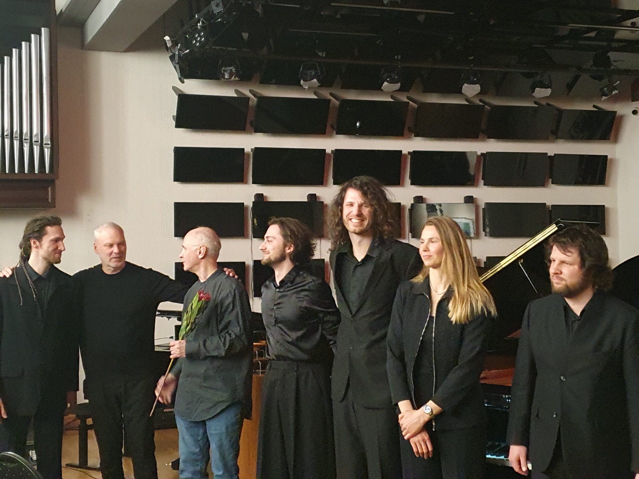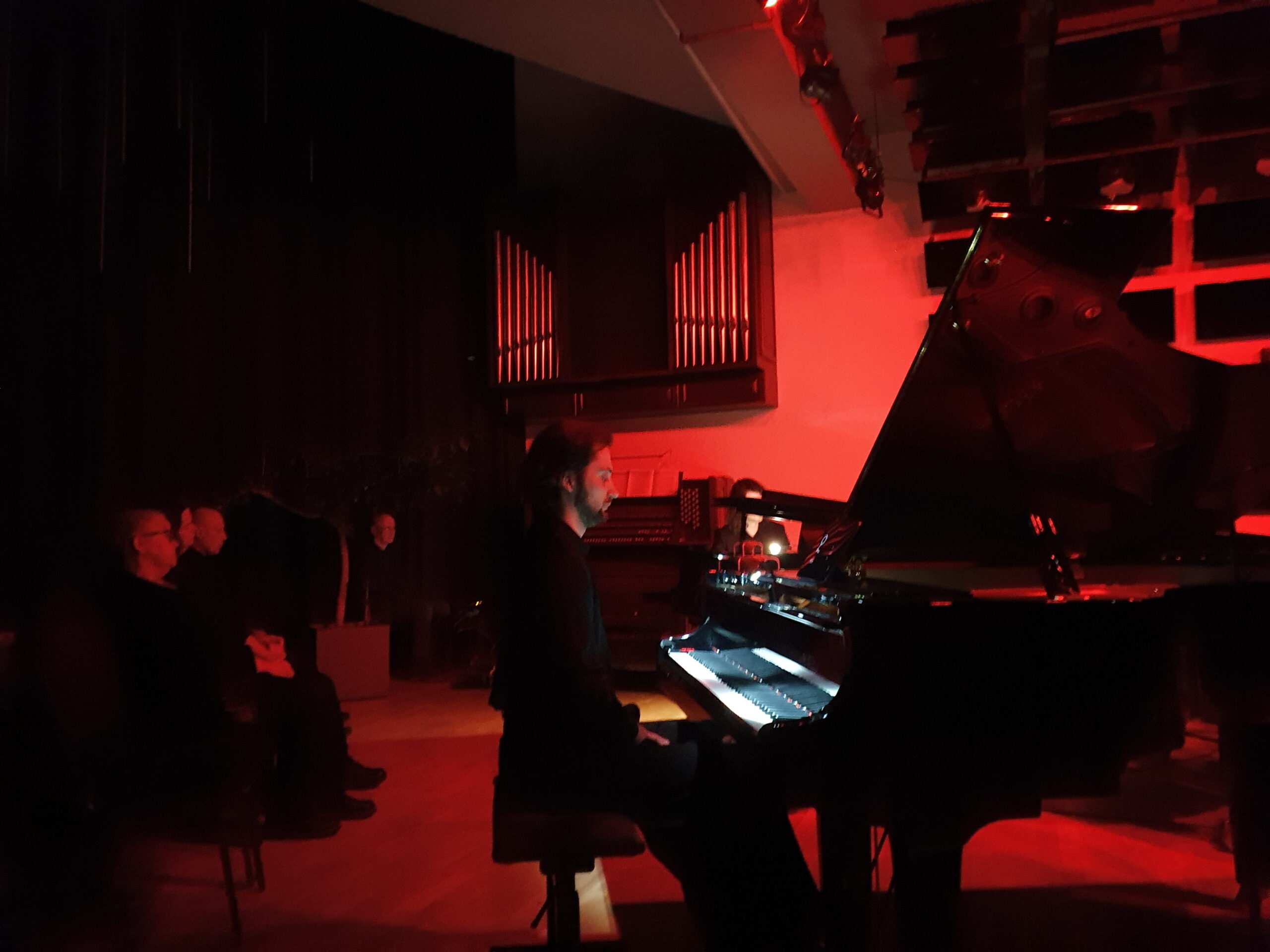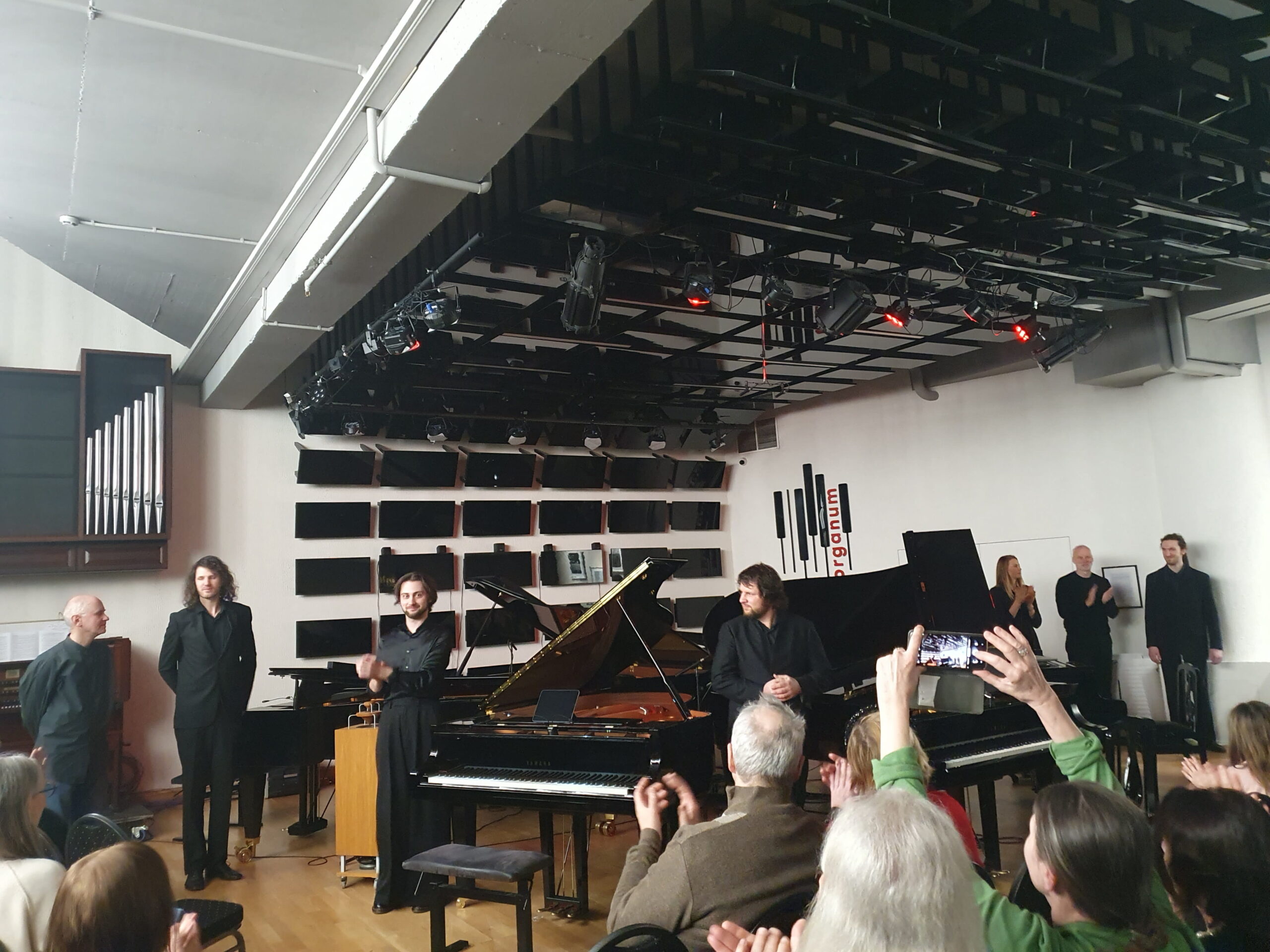 Seanse kaip nenusakomo, neatspėjamo būsenos ir veiksmo transe dalyvavo ne tik klausytojai, bet ir patys atlikėjai. Pasibaigus kūriniui kelias minutes tvyrojo tyla: nei atlikėjai skubėjo pajudėti, nei žiūrovai – ploti. Galima buvo spėlioti, kad gal taip ir sumanyta sėdėti prie instrumentų tol, kol pasigirs plojimai. Bet tokio sumanymo nebuvo, ir kūrinio trukmę būtent šitaip pakoregavo patys klausytojai. Ši nenumatyta tyla tiksliai užbaigė koncepciją lyg natūralus post scriptum. Ant lubų daugybėje blizgančių juodų „veidrodžių“ – fortepijono kėdžių plokštumų – atsimušė klaviatūros ir siluetai; kartu su scenografiniu minimalizmu viskas sudarė įspūdingą estetinę vienovę.