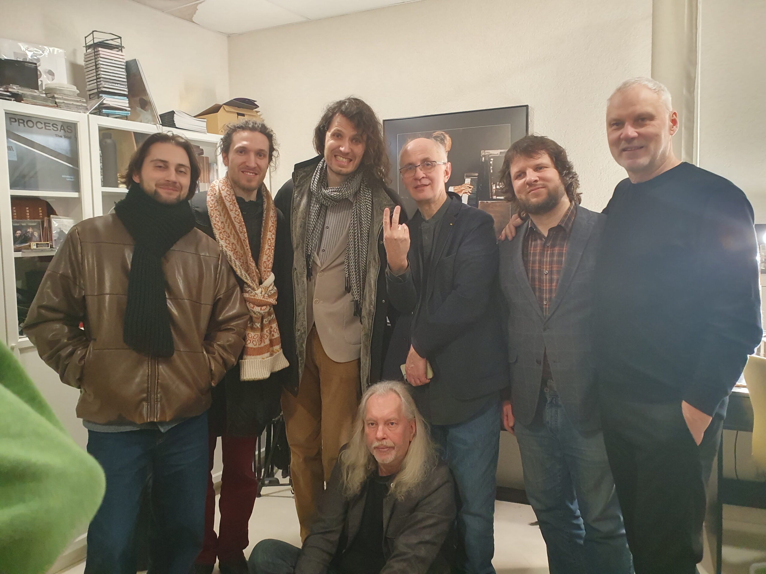 Iš kairės: Benediktas Bazaras, Tomas Kutavičius, Šarūnas Nakas, Giedrius nakas, Mykolas Bazaras, Emilija Rožukaitė, Motiejus Bazaras. Daivos Tamošaitytės nuotr.