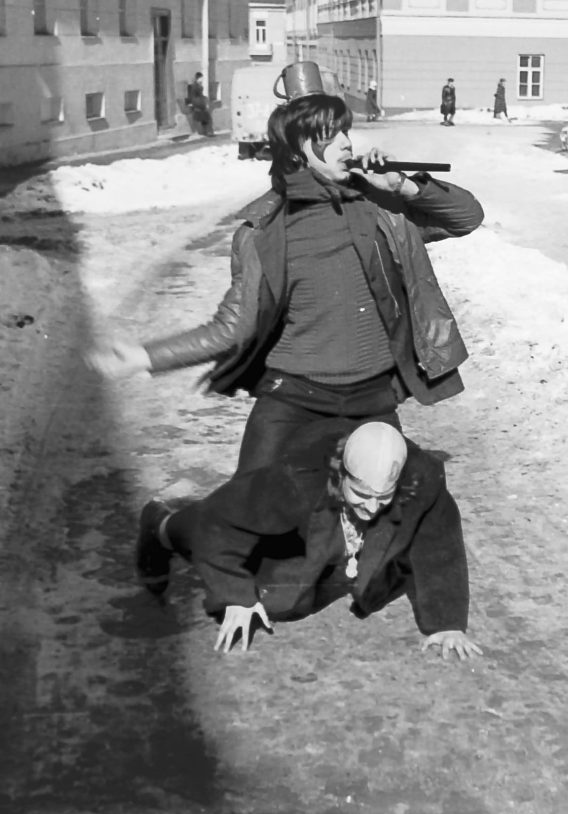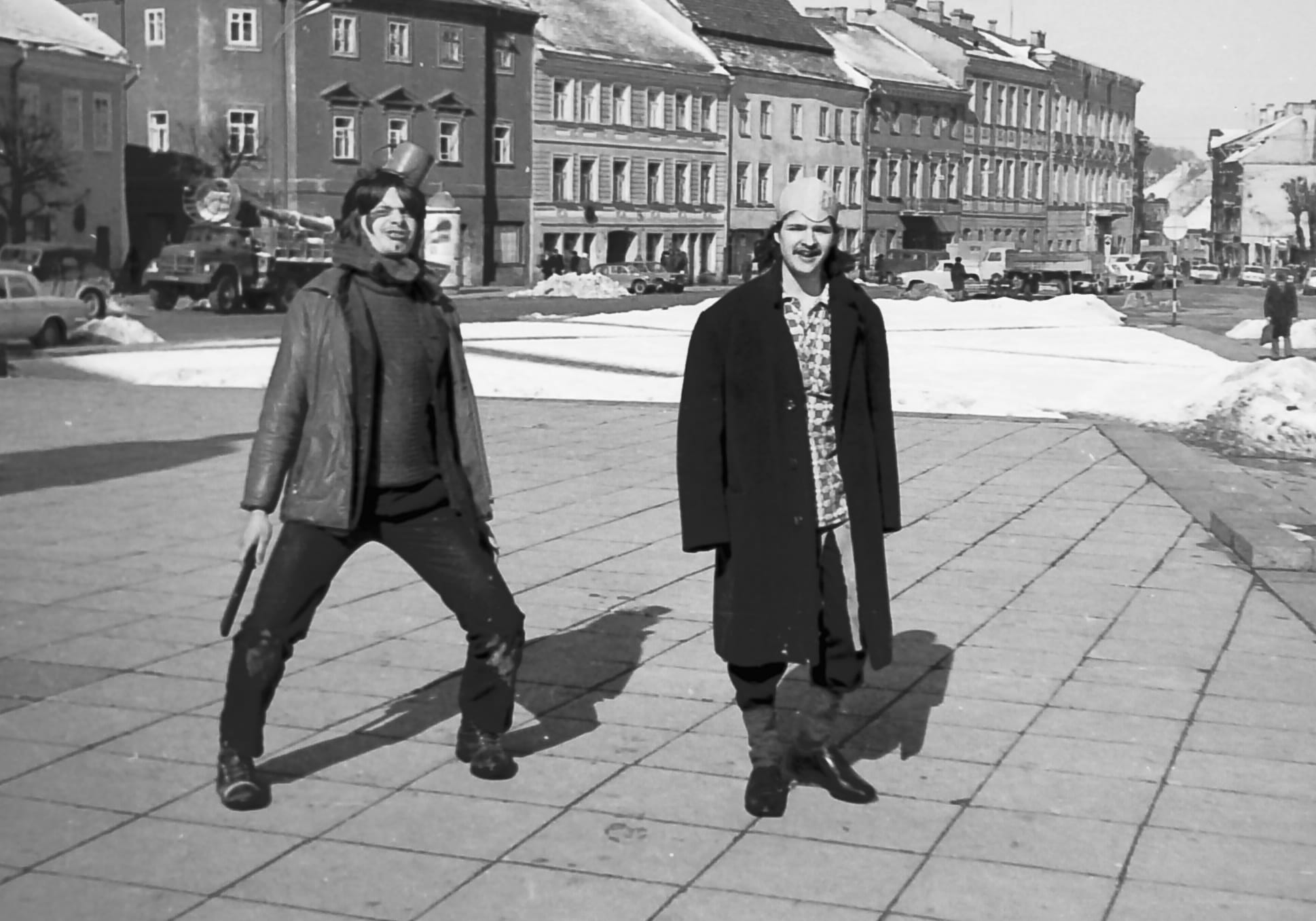 Šiose Aliaus Lisausko išsaugotose nuotraukose – nūnai žymaus grafiko, menininko Gitenio Umbraso ir jo bičiulio, filologo Kazimiero Seibučio jaunystės maišto prieš sovietų režimą atgarsiai. 1981 metų kovo 13 dieną jie paskelbė „tarakonų diena” ir vaikščiojo po Vilnių įsivilkę į šiurpinančius personažus, primenančius Užgavėnių ar šiurpnakčio (Helovyno) kaukes. Toks hepeningas buvo unikali ir itin drąsi meninė apraiška. Nuotraukų autorius – Mindaugas Butkus. Gitenio Umbraso foto archyvas.